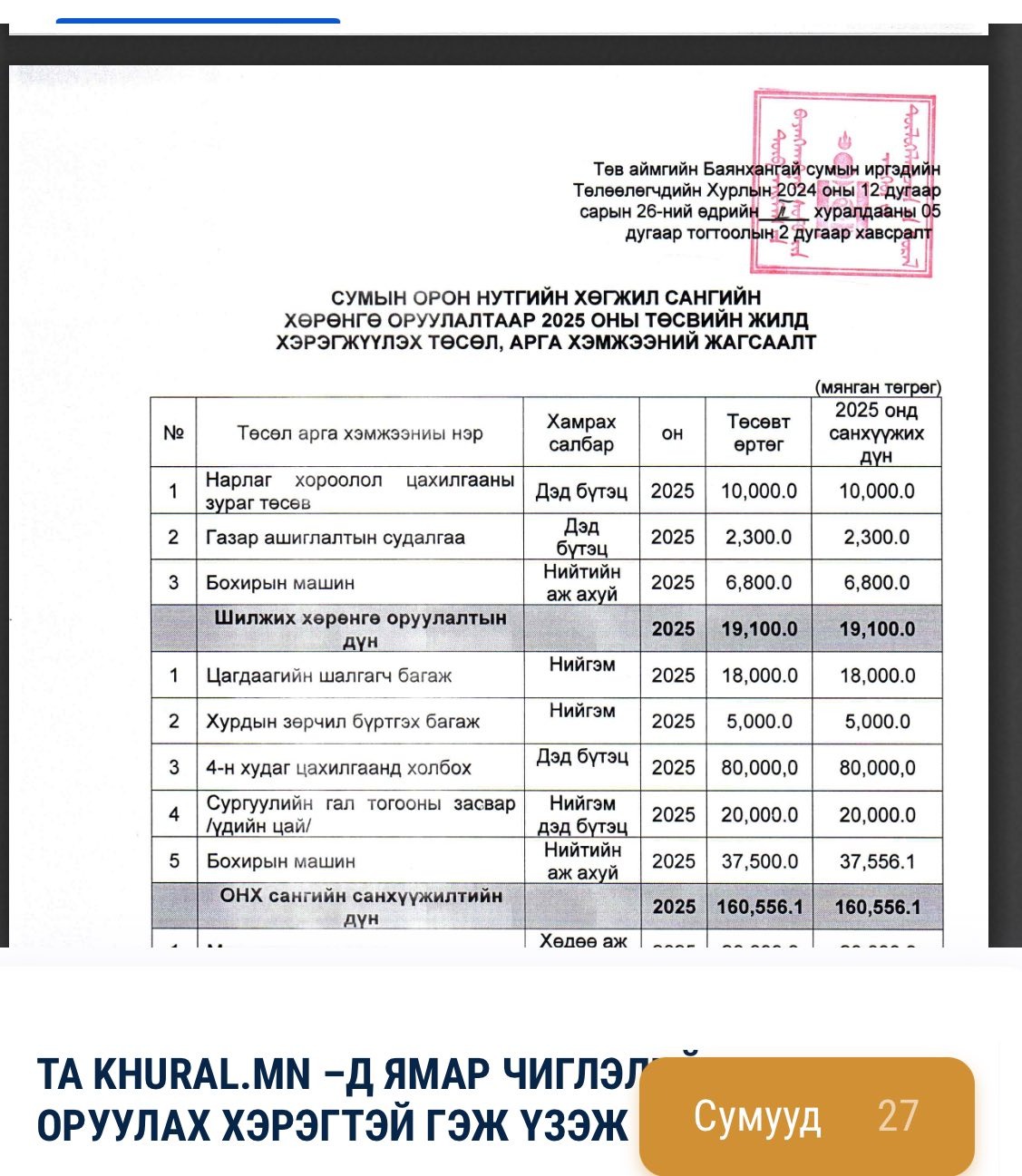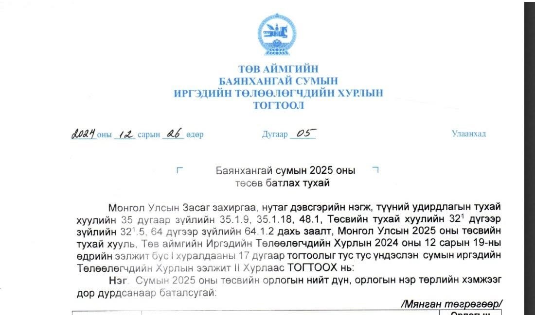 Төв аймгийн Баянхангай сумын ИТХ